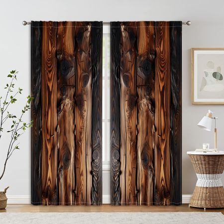 2 шт. Вертикальная полосатая занавеска с рисунком под дерево, напечатанная на двери, 3D цифровая печать, занавеска для дома, спальни, гостиной, декор, карман для штанги 2x100W240H(CM)Rod Pocket