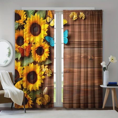 2 шт. Винтажная дверь, занавеска с рисунком подсолнуха, карниз для штор, карманные шторы для гостиной, шторы для спальни, декор комнаты W100X240H(cm)x2PcsHook