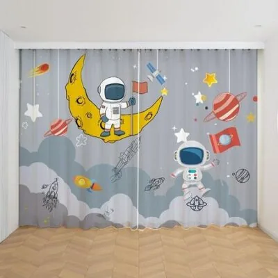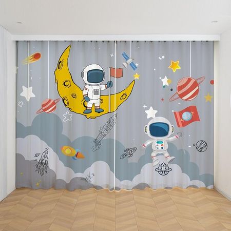 2 шт. занавеска с изображением космонавта из мультфильма, тонкая занавеска с изображением ракеты и планеты для мальчиков и детей, для спальни, гостиной, 2023 г., новый индивидуальный заказ W165H250(CM)x2PCSRod Pocket