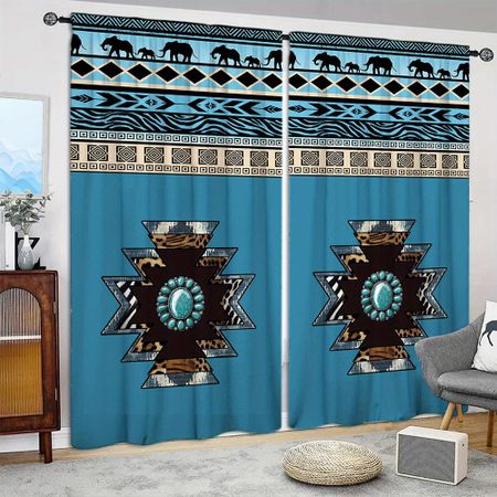 2 шт. Занавеска с принтом племени Юго-западные полосы для декора дома — Карман для штанги, оконное оформление для спальни, офиса и кухни 52.5cmX116cm X 2pcs
