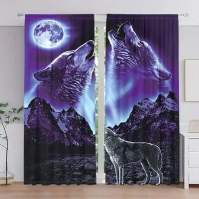 2 шт., занавеска с принтом «волки, лунный свет, лес» и карманным креплением, шторы с цифровым принтом, полиэстер, материал для гостиной, кухни W50xH130(CM)x2PCS-Rod pocket