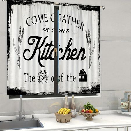 2 шт. занавески для кухни в фермерском стиле, деревенская вилка, нож, винтажное оформление окна для кухни, спальни, кафе, гостиной, дома, декабрь W60H60(CM)x2PCSGrommet Top