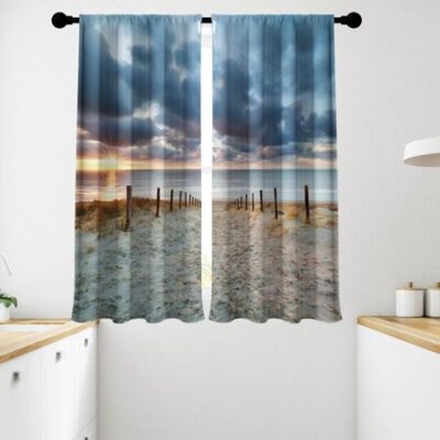 2 шт., занавески для окон с изображением пейзажа, карманные шторы для гостиной, спальни, кабинета, украшения дома, оконная обработка W50H130(CM)x2pcsRod Pocket