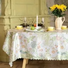 Скатерть с цветочным принтом создаёт лёгкое летнее