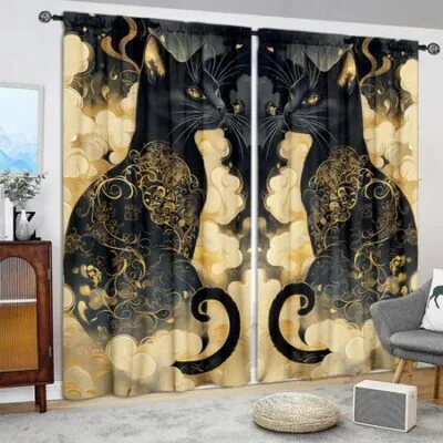 2 шт. занавески с принтом «Муаровый кот» для домашнего декора — оконные карманы с карнизом для спальни, офиса, кухни, гостиной и кабинета 52.5cmX116cm X 2pcs