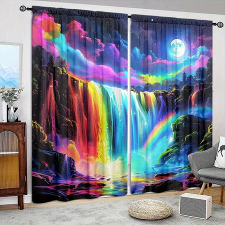2 шт. занавески с принтом «Радужные водопады» для домашнего декора — оконные карманы с карнизом для спальни, офиса, кухни, гостиной 52.5cmX116cm X 2pcs