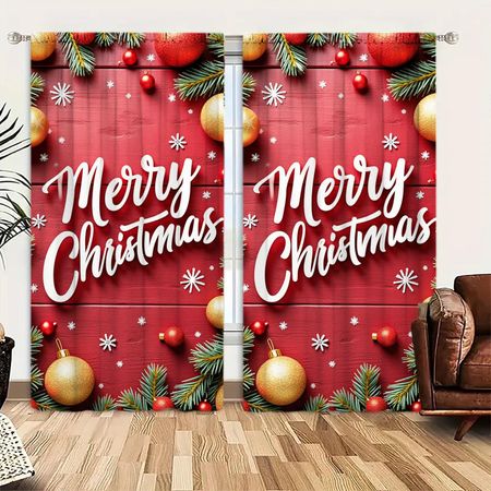2 шт. занавески с принтом «Счастливого Рождества» для рождественского домашнего декора — оконные карманы с карнизом для спальни, офиса, кухни 52.5cmX116cm X 2pcs