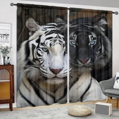 2 шт., занавески с принтом в стиле белого тигра для домашнего декора, карманные занавески для окон, спальни, офиса, кухни, гостиной, кабинета (50Wx50H)x2(CM)&Hook