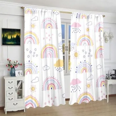 2 штуки — мультяжная радуга — штора с принтом — полиэстеровый материал — для спальни, гостиной, кабинета, штора для защиты от посторонних глаз 52inchx84inchx2Pcs