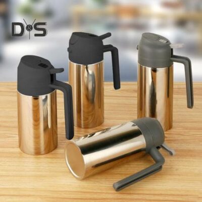 2 в 1 бутылка-диспенсер для масла для кухни 360/430/500 мл, распылитель масла из нержавеющей стали с двумя насадками, распылитель масла для барбекю, приготовления пищи, гриля, салатов, выпечки S серый