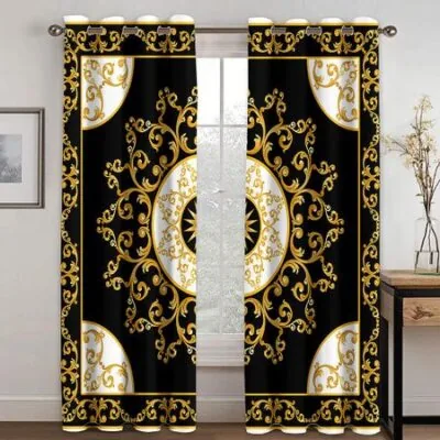 2023 Модные товары класса люкс Брендовые черные золотые текстуры солнцезащитные шторы 2 панели 3D Современный домашний декор Шторы для гостиной и спальни 100W130H(CM)40x51inGrommet Top