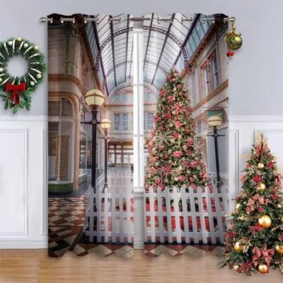 2024 Шторы Санты Старый Санта-Клаус сидит дома в рождественскую ночь и читает письмо возле дерева Шторы на окна в гостиной 100W130H(CM)40x51inGrommet Top