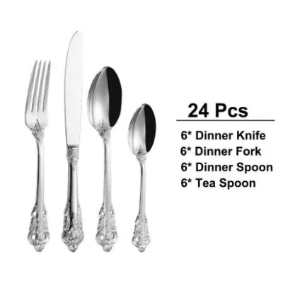 24/30 шт. золотой набор столовых приборов из нержавеющей стали, винтажная посуда в стиле вестерн, роскошная посуда, вилки с гравировкой, ножи, ложки, серебристая посуда