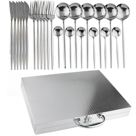 24 шт. черный набор столовых приборов, роскошный набор столовых приборов, обеденный набор из нержавеющей стали 304, вилка, ложка, нож, посуда, столовое серебро с подарочной коробкой 24pcs+1box серебряный