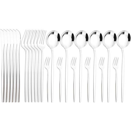 Главная » Все для дома 24 шт., набор столовой посуды черного золота, нож, вилка для торта, ложка, столовые приборы, столовые приборы из нержавеющей стали, набор столовых приборов для вечеринки, кухонная посуда серебряный Просмотров 10 Zoseil Home