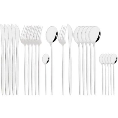 24 шт., набор столовых приборов из нержавеющей стали, столовое серебро, черное золото, набор столовых приборов, вилка, ложка, можно мыть в посудомоечной машине, посуда серебряный