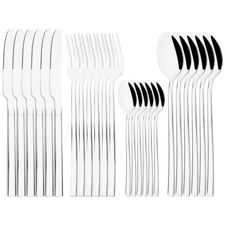 24 шт. Радужный набор столового серебра с держателем Столовые приборы из нержавеющей стали 304 Нож Вилка Ложка Посуда Вечеринка Кухонный набор столовых приборов со стойкой для хранения 24Pcs-Silver