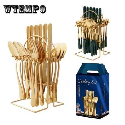 Главная » Все для дома 24 шт., роскошный набор столовых приборов, набор посуды из нержавеющей стали, золотой набор посуды, нож, вилка, ложка, посуда для посудомоечной машины Просмотров 1 WTEMPO