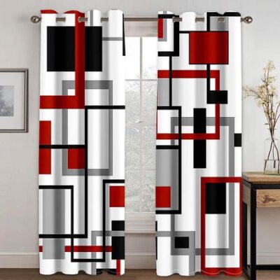 270*240 дешевые абстрактные геометрические черные красные современные тонкие шторы на два окна для гостиной спальни кухни офиса декор 2 шт. W120H270(CM)x2PCSGrommet Top