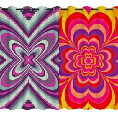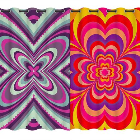 2Panel полузатемняющие шторы 2024 New Color Wave Геометрические абстрактные шторы для комнаты Шторы на заказ Мультфильм Кухня Короткие шторы 2x60Wx50H(CM)Grommet Top