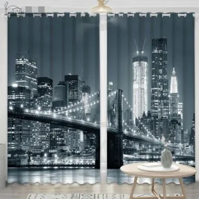 2Panels New York City Night Curtain Статуя Свободы Шторы для спальни Гостиная Кухня Оконные жалюзи Cortinas Верхняя часть с люверсами 2x100W240H(CM)Rod Pocket