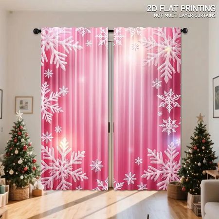 2Pcs Vibrant Pink Snowflake Pattern Curtains, Polyester Curtains For Christmas , Rod Pocket For Living Room Bedroom Decor 24Wx59L(60x150CM)X2Rod Pocket