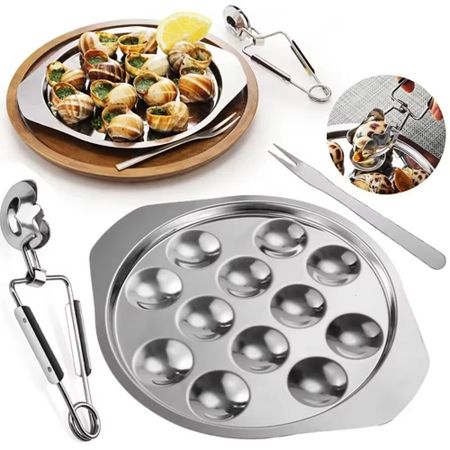 3 шт./компл. Поднос для сервировки эскарго из нержавеющей стали, круглые тарелки для морепродуктов, жареные улитки, тарелка для приготовления пищи 3PCS/SET