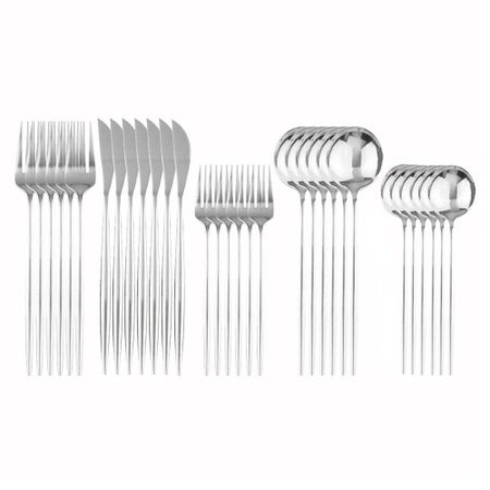 30 шт., набор столовых приборов из белого золота, набор столовой посуды из нержавеющей стали 18/10, нож, десертная вилка, ложка, серебро, набор кухонной посуды серебряный