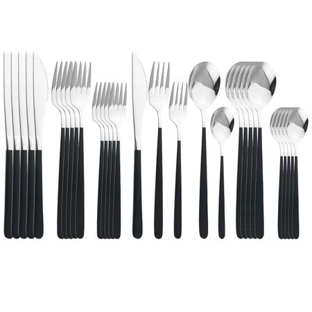 30 шт., набор столовых приборов из розового золота, набор столовых приборов из нержавеющей стали 304, нож, вилка, кофейная ложка, набор столовых приборов, кухонный ужин, набор посуды серебряный/чёрный