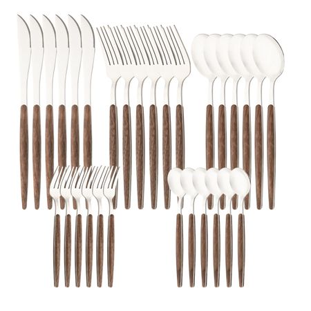 Главная » Все для дома 30 шт., набор столовых приборов с деревянной ручкой, столовая посуда, повседневное использование, столовое серебро для ресторана, вечеринки, свадебная посуда, 6 ножей, вилка, ложка серебряный Просмотров 14 JANKNG HOME