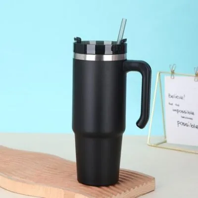 30 унций соломенная термокружка из нержавеющей стали 304 с ручкой, большая емкость, термоизолированная, двухслойная вакуумная кофейная чашка 401-500ml чёрный