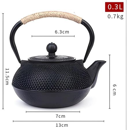 300/1200 мл черный японский чугунный чайник, железный чайник, чайник Tetsubin, поставляется с ситечком, цветочный чайный сервиз, украшение, орнамент 300ML