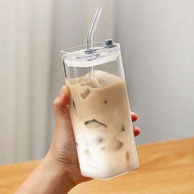 350 мл квадратная стеклянная чашка для кофе с крышкой и трубочкой, термостойкая кружка для холодного кофе, чашка для завтрака, молочная прозрачная пивная кружка, посуда для напитков 350ml