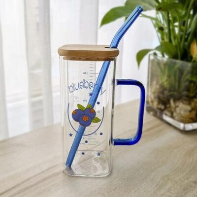 350 мл квадратная стеклянная кружка с крышкой и трубочкой для завтрака, молока, прозрачная кружка для вечеринки, пива, кофе, посуда для напитков, стекло 301-400ml