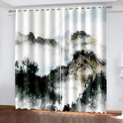 3D картина тушью в китайском стиле, роскошные домашние шторы от солнца, 2 шт., украшение для гостиной, спальни, крючок, дырокол 100W130H(CM)40x51in&Hook