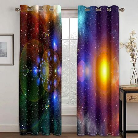 3D-принт с рисунком в виде мультяшного космоса, галактики и звезд, тонкая полузатеняющая оконная занавеска для детской спальни для мальчиков, гостиной, дома, крючком W50 X H130(CM)X2Grommet Top