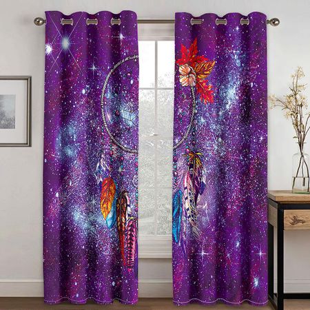 3D Призрачная звезда, тарелка, узор из перьев, занавеска от солнца, 2 шт., украшение для гостиной, спальни, дома, пирсинг, крючок 100W130H(CM)40x51in&Hook