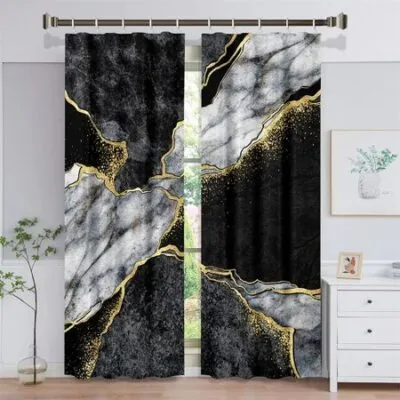3D Современный Черный Золотой Абстрактное Искусство Мрамор Элегантный Дизайн 2 Части Тонкая Затеняющая Оконная Штора Шторы для Гостиной Спальни Декор 100W130H(CM)40x51inGrommet Top