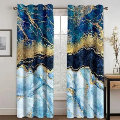 3D Современный мраморный принт, черный и золотой, 2 панели, тонкие занавески, оконные шторы для гостиной, роскошные шторы для спальни, новый стиль W50xH130(CM)x2pcsGrommet Top