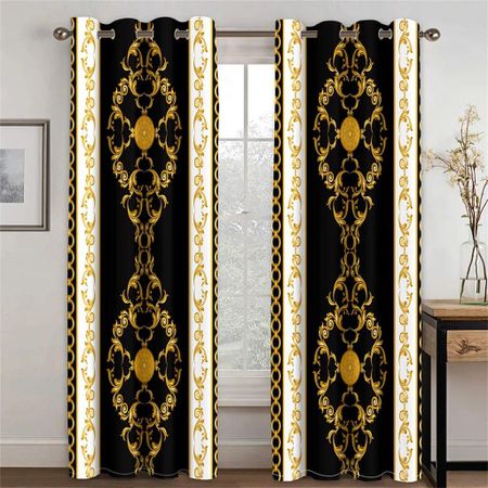 3D современный роскошный брендовый дизайн в стиле барокко, черное золото, 2 шт., тонкая затеняющая оконная занавеска для гостиной, спальни, декор, карман для штанги W50xH130(CM)x2PCS-Rod pocket