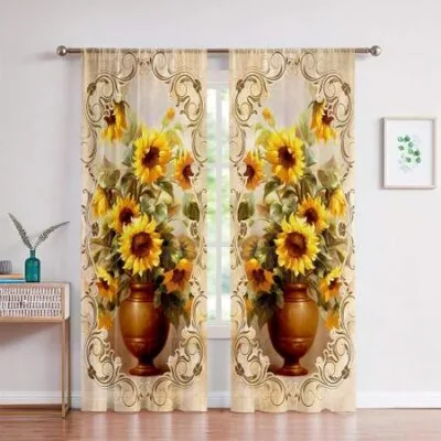 3D Винтажные шторы в стиле поля, Растение Подсолнух, Европейский фермерский дом, Дом, Гостиная, Спальня, Балкон, Декор для кухни, 2 шт. W50X130H(CM)X2PCSRod pocket