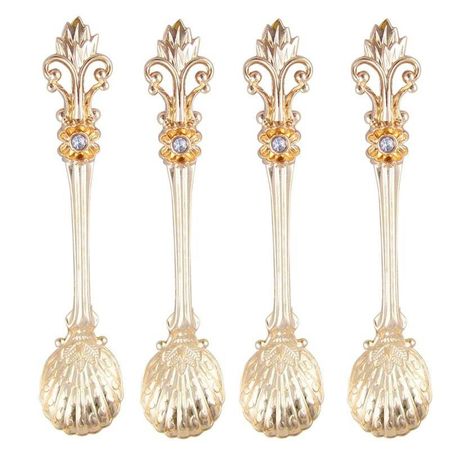 4 шт., 11 см, королевский стиль, набор металлических резных кофейных ложек, винтажная столовая ложка, антикварные чайные ложки, кофейная ложка, столовые ложки 4Pcs Gold