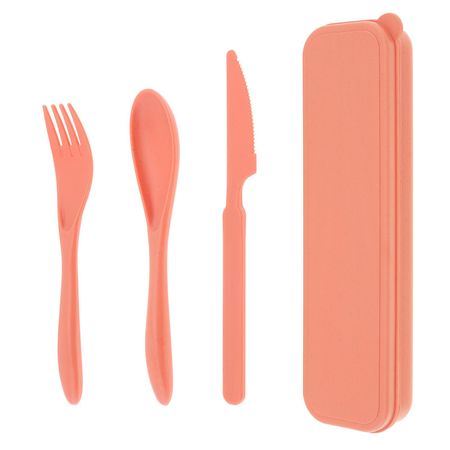4 шт./компл. портативный дорожный набор столовых приборов из пшеничной соломы для кемпинга, пикника/школьного обеда/ежедневного использования с коробкой для посуды жёлтый