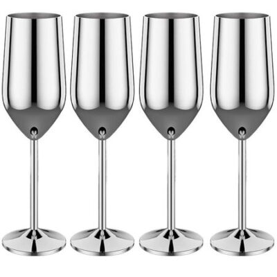 4 шт. Новые бокалы для вина из нержавеющей стали, небьющиеся металлические бокалы для коктейлей объемом 220 мл для употребления коктейлей и вина в баре.