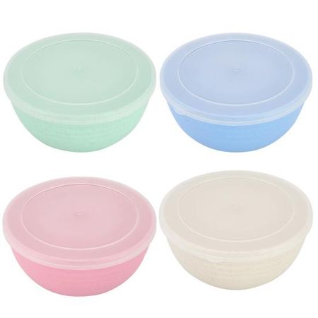 4 шт. пищевая пластиковая салатница с пыленепроницаемой крышкой. Многофункциональная утолщенная миска для хлопьев. Можно мыть в посудомоечной машине. Многоразовая миска для еды с лапшой и рисом.