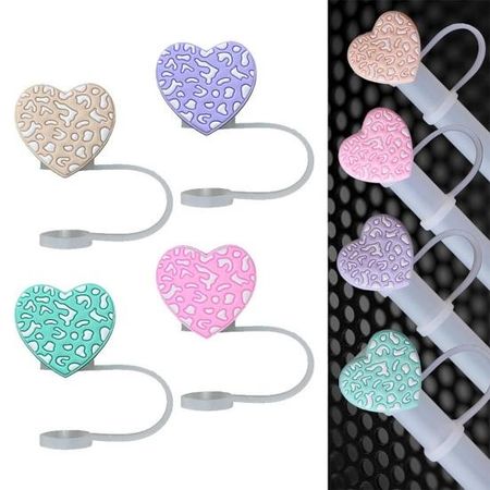 4 шт. Соломенная крышка в форме сердца для чашки 10 мм. Силиконовая герметичная соломенная крышка. Многоразовая соломенная крышка. Активный отдых на свежем воздухе. Аксессуар для напитков для декора вечеринки. 4pcs