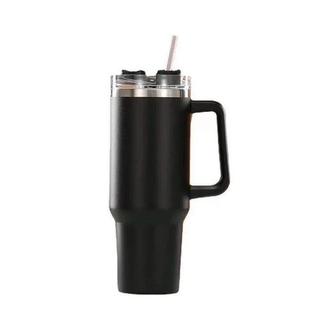 40 унций соломенная термоизоляционная чашка для кофе с ручкой, портативная автомобильная бутылка для воды из нержавеющей стали, большая емкость, дорожная термокружка без BPA чёрный