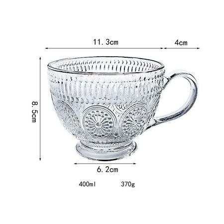 400 мл Европейская стеклянная чашка в стиле ретро с тиснением подсолнечника, чашка для молока для завтрака, ручка с защитой от ожогов, чашка для чая, кофе, чашка для молочного коктейля, сока для вечеринки 400ml