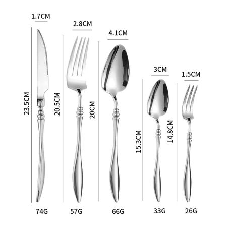 5 шт. роскошных столовых приборов из нержавеющей стали 304, набор столовых приборов, нож для стейка, вилки для фруктов, ложки, столовая посуда, можно мыть в посудомоечной машине, подарок серебряный