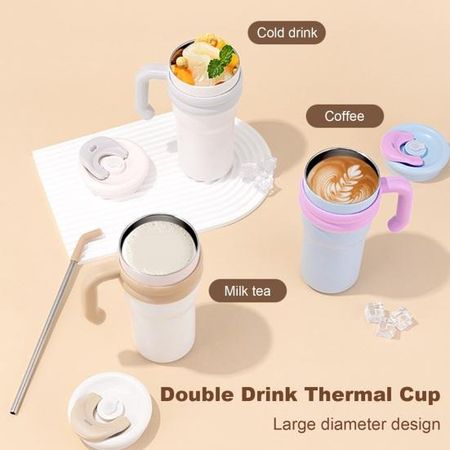 500 мл/700 мл термокружка из нержавеющей стали для двух напитков с ручкой и соломинкой портативная герметичная дорожная кружка для мальчиков и девочек 700ML розы красного